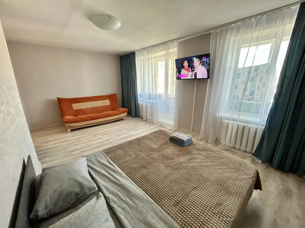 Однокомнатная квартира в центре города! Предлагаемые нами апартаменты оснащены всем необходимым для комфортного проживания : стиральная машина, холодильник, микроволновая печь, телевизор, электрочайник, высокоскоростной интернет, раздельные спальные места, постельное белье и полотенца, еженедельная уборка с заменой постельного белья, посуда, столовые приборы и все кухонные принадлежности.